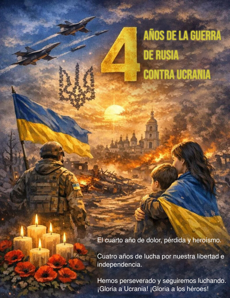 Hoy recordamos con dolor y firmeza los cuatro años de una guerra, que nunca debió haber existido. Cuatro años desde que una nación pacífica, Ucrania, fue atacada por una fuerza despiadada, cuya única motivación parece ser la ambición, el egoísmo y la voluntad de someter a un pueblo entero. Desde el inicio de esta guerra, lo que ha caído no solo son edificios y ciudades, sino los sueños, las esperanzas y la paz de millones de personas.